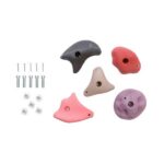 Komplektis on 5 erinevat värvi ja erineva kujuga ronimiskivi. Iga kivi kinnitub ühe kaasasoleva poldi ja peitmutriga ning pöörlemise takistamiseks ka ühe puidukruviga. Need L suuruses kivi-materjalist ronimiskivid on populaarsed nii koduaeda kui avalikule mänguväljakule. Ronimiskividega saad ehitada igas suuruses ronimisseina.