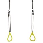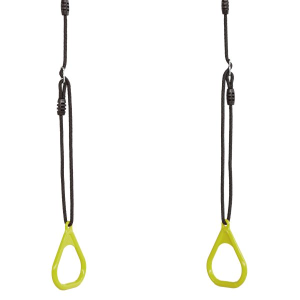 Plastikust laimirohelist värvi võimlemisrõngad, koos musta värvi Premium riputusköitega.